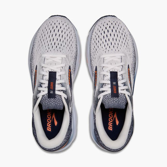 Brooks Mens Ghost 16 Running Shoe in White/Peacoat/Orange